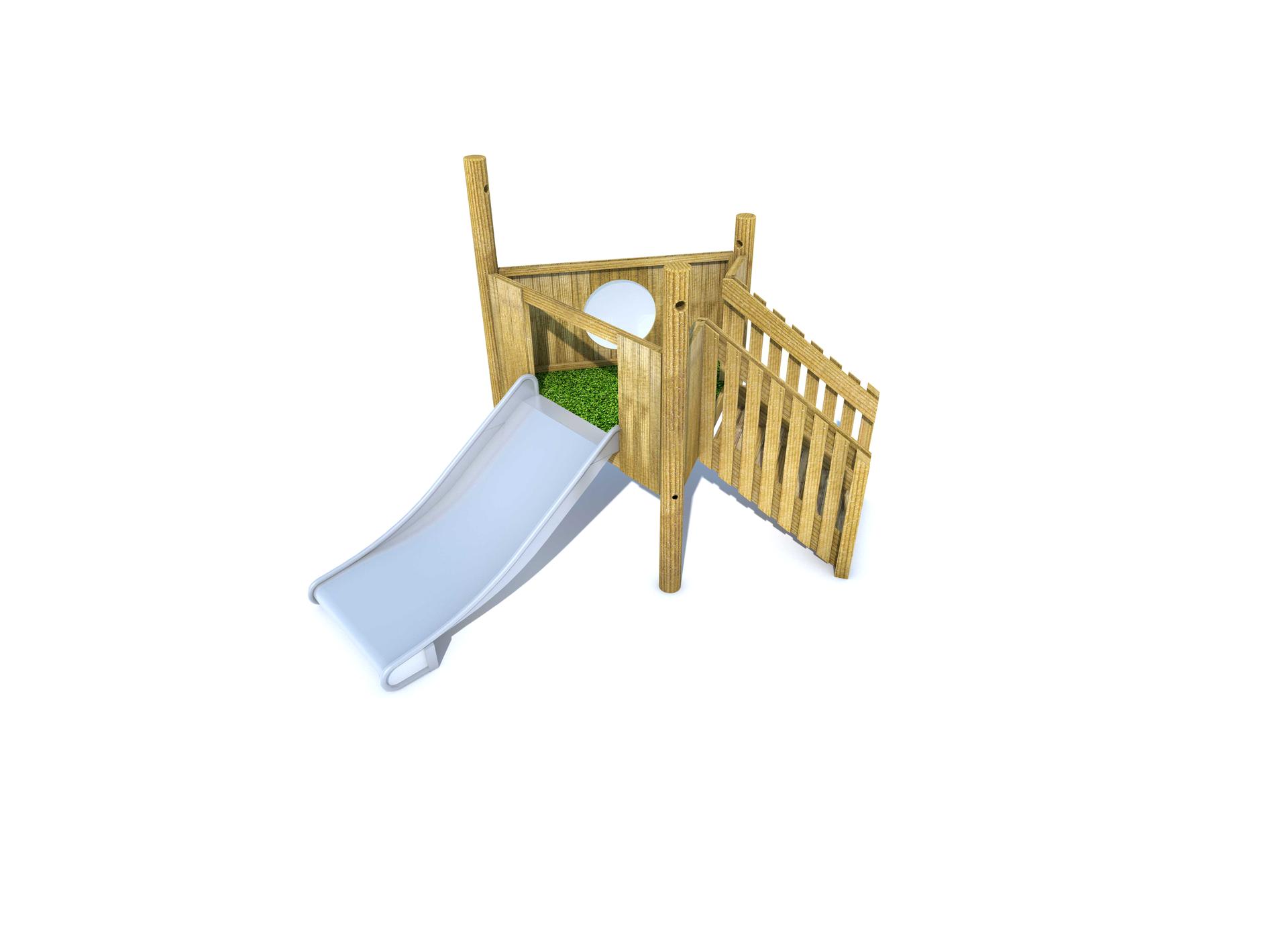 Designed with a larger slide, children can be accompanied by carers, teachers and other members of staff. Alongside this, the stair access features handrails on either side, ensuring children safely climb the stairs to reach the raised platform.