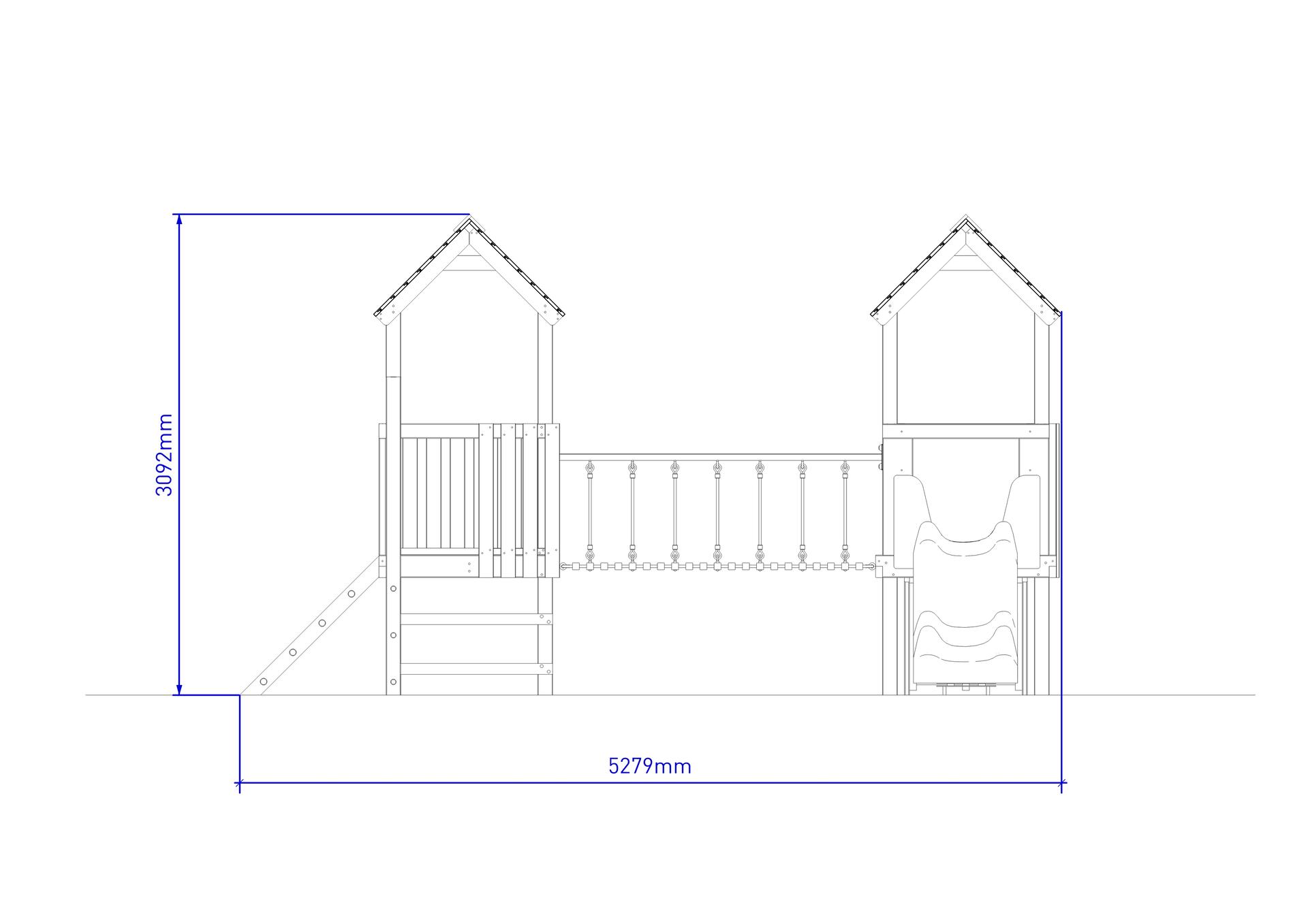The Tintagel Modular Play Tower, includes two roofed towers with deck platforms with a suspension bridge that adds a fun element when crossing.