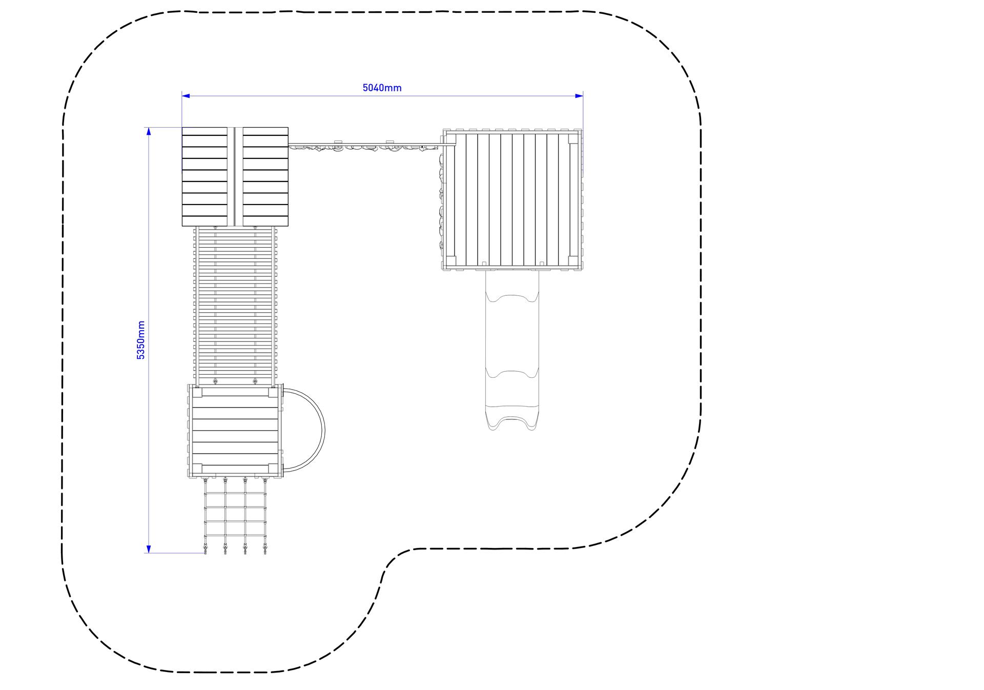 There are multiple entry and exit points which include a Climbing Net, Fireman's Pole, climbing wall and slide. Den-making can take place underneath due to the amount space available.