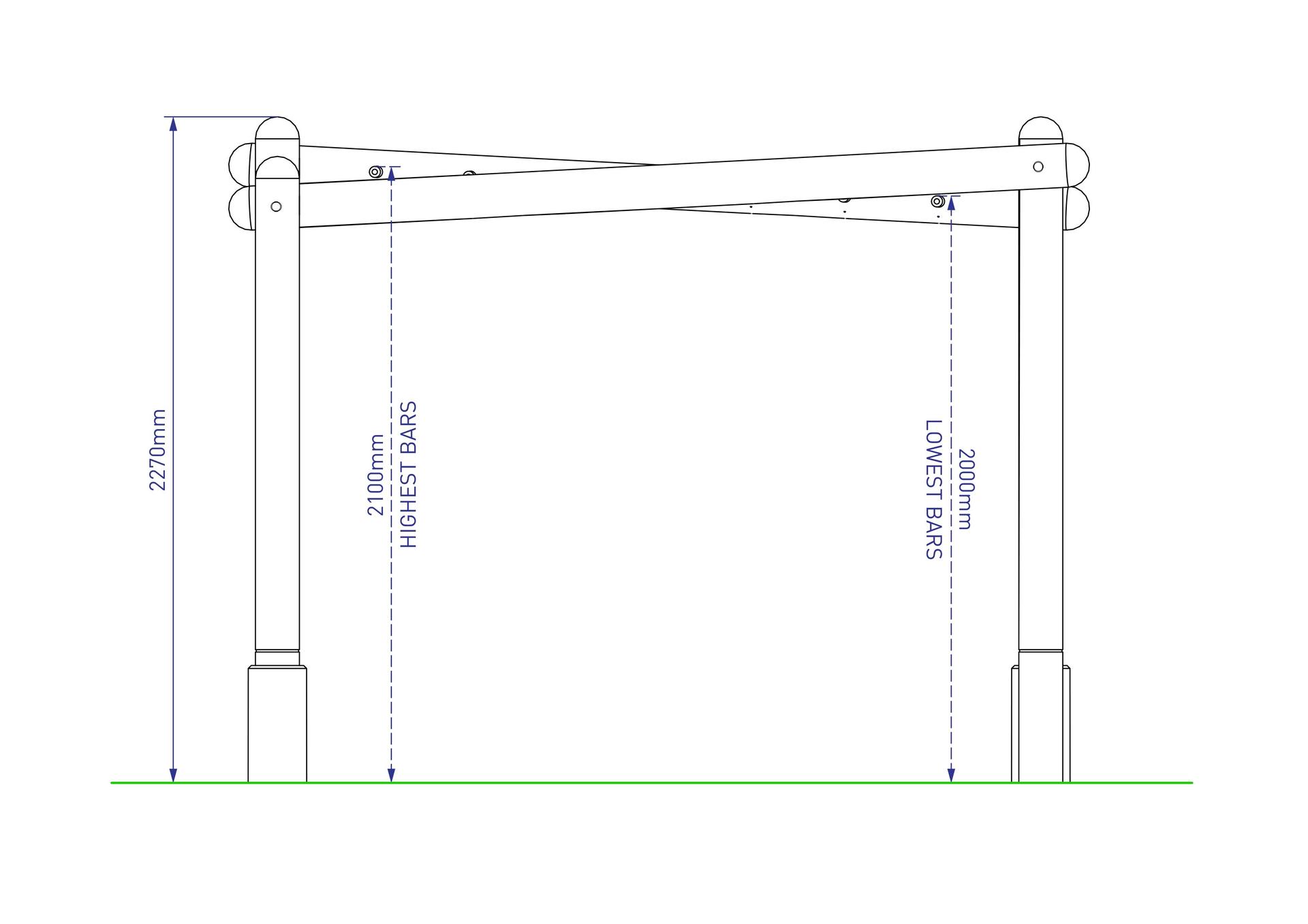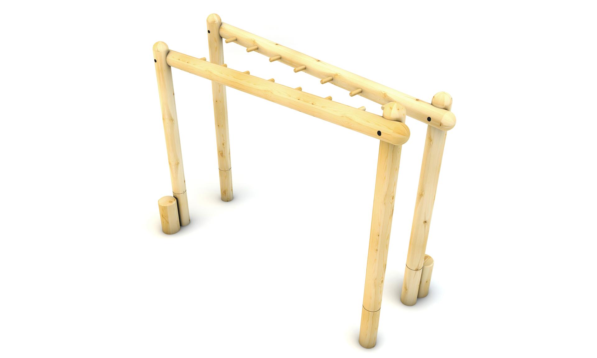 Smooth, solid timber intersecting Monkey Bars - ideal for developing upper body and core strength, coordination, and fine-motor skills through grab and grasp actions.
