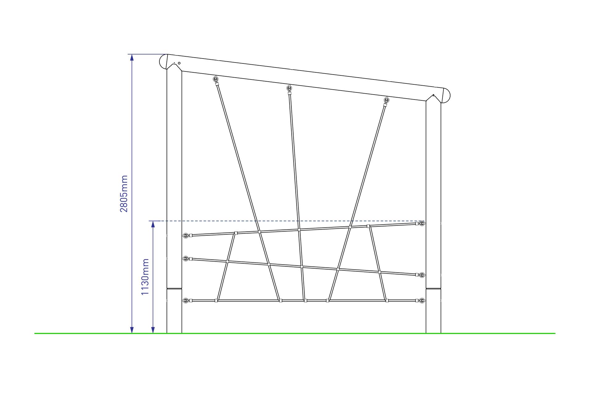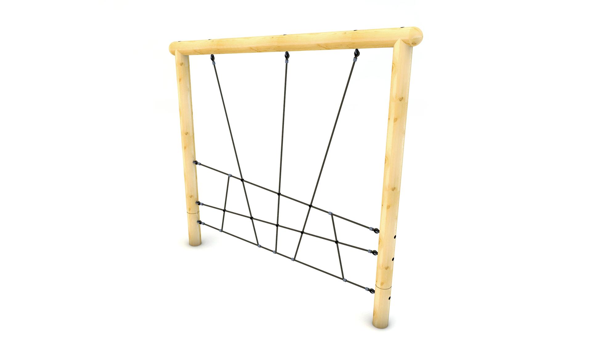 A visually engaging series of intersecting reinforced ropes span between a beautifully smooth timber frame, to form this clever climber.
