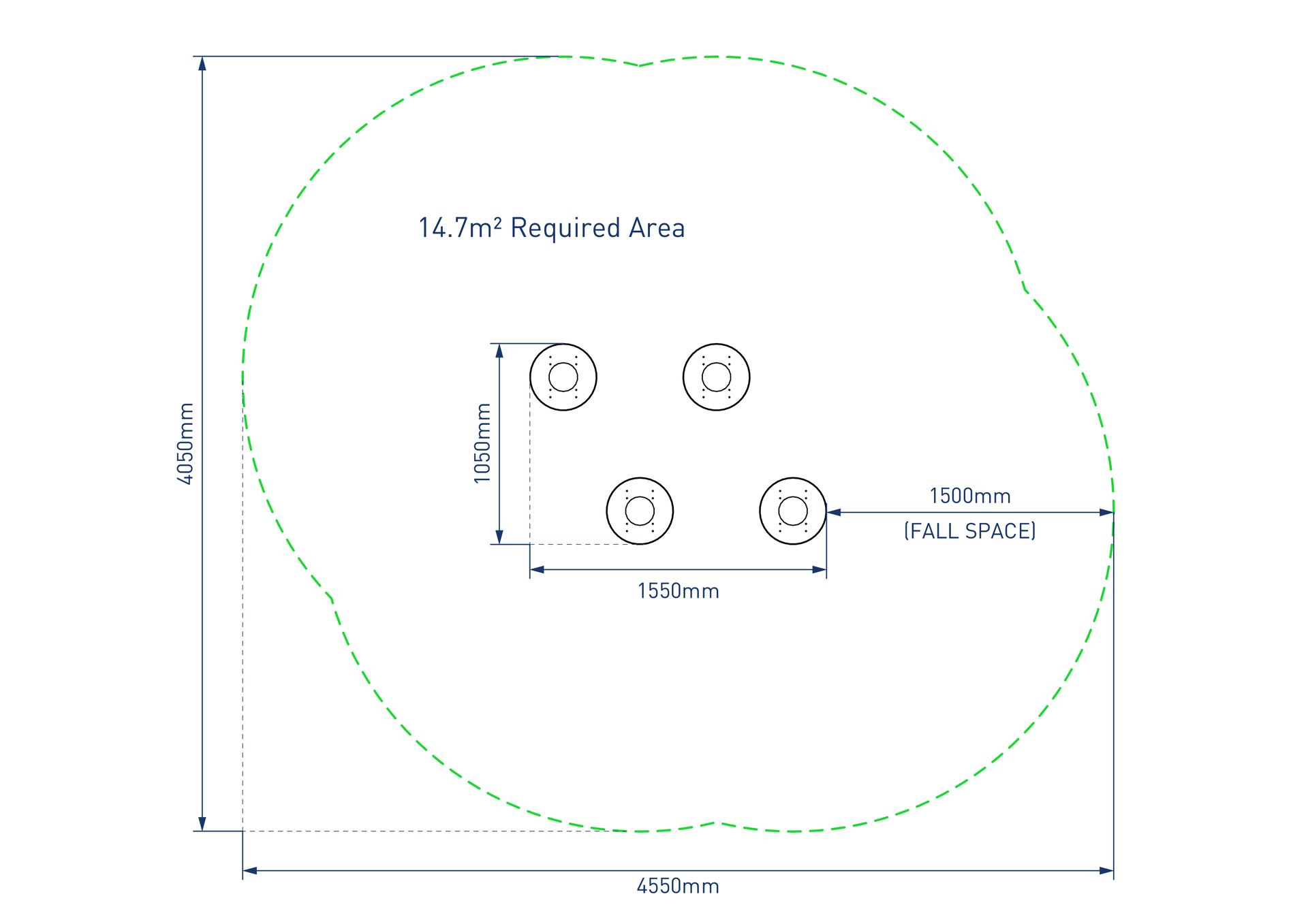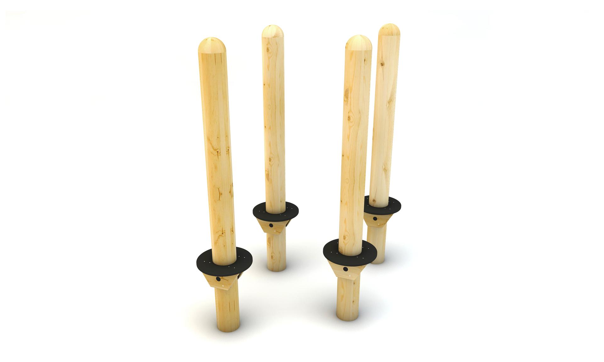 This set of 4 smooth, play-grade timber vertical posts are fitted with sturdy balance discs close to the base.