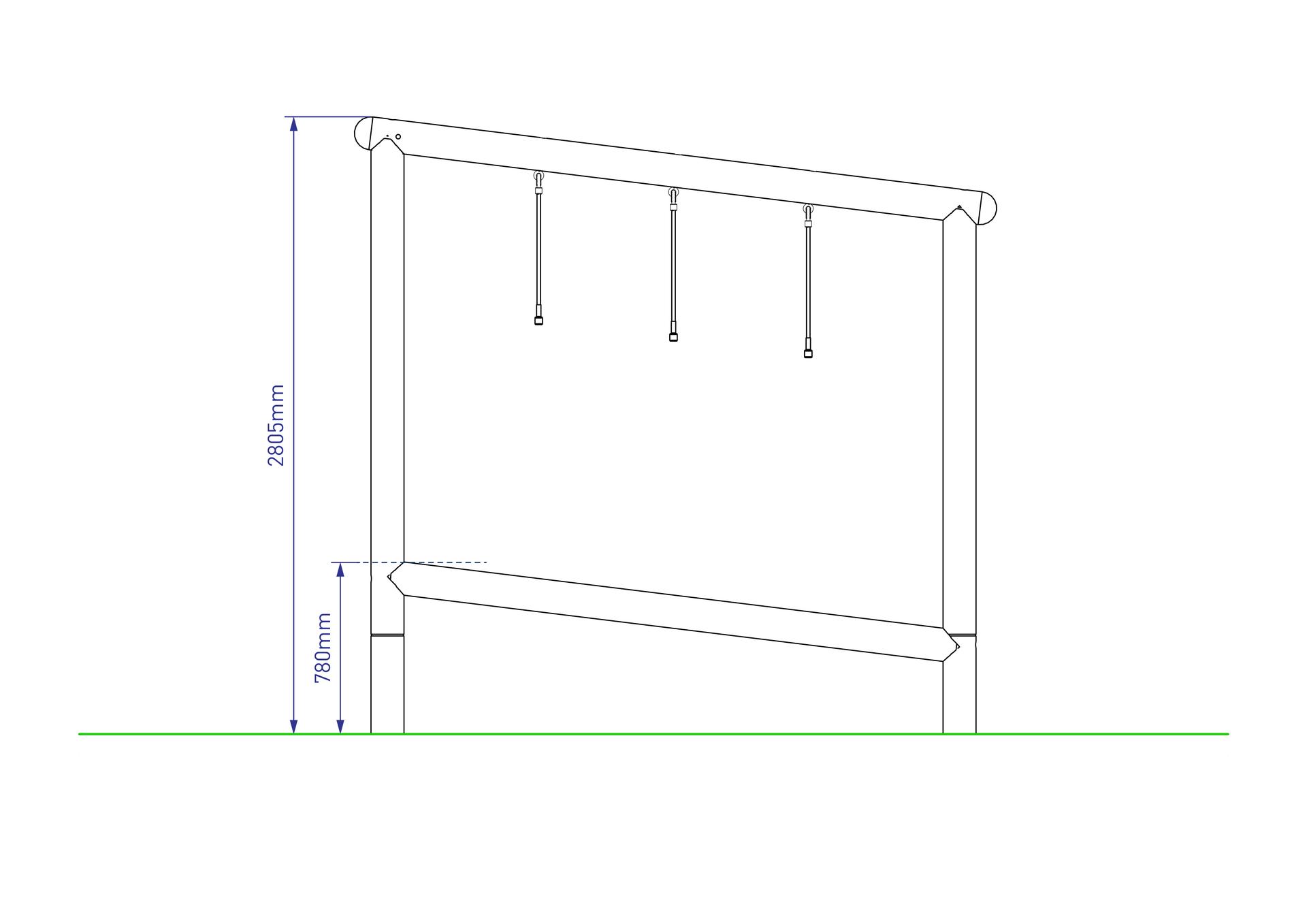This sturdy construction also features a parallel low-level timber beam so that children have the option to balance their way from one end to the other, gripping on to the drop-ropes above to steady themselves.