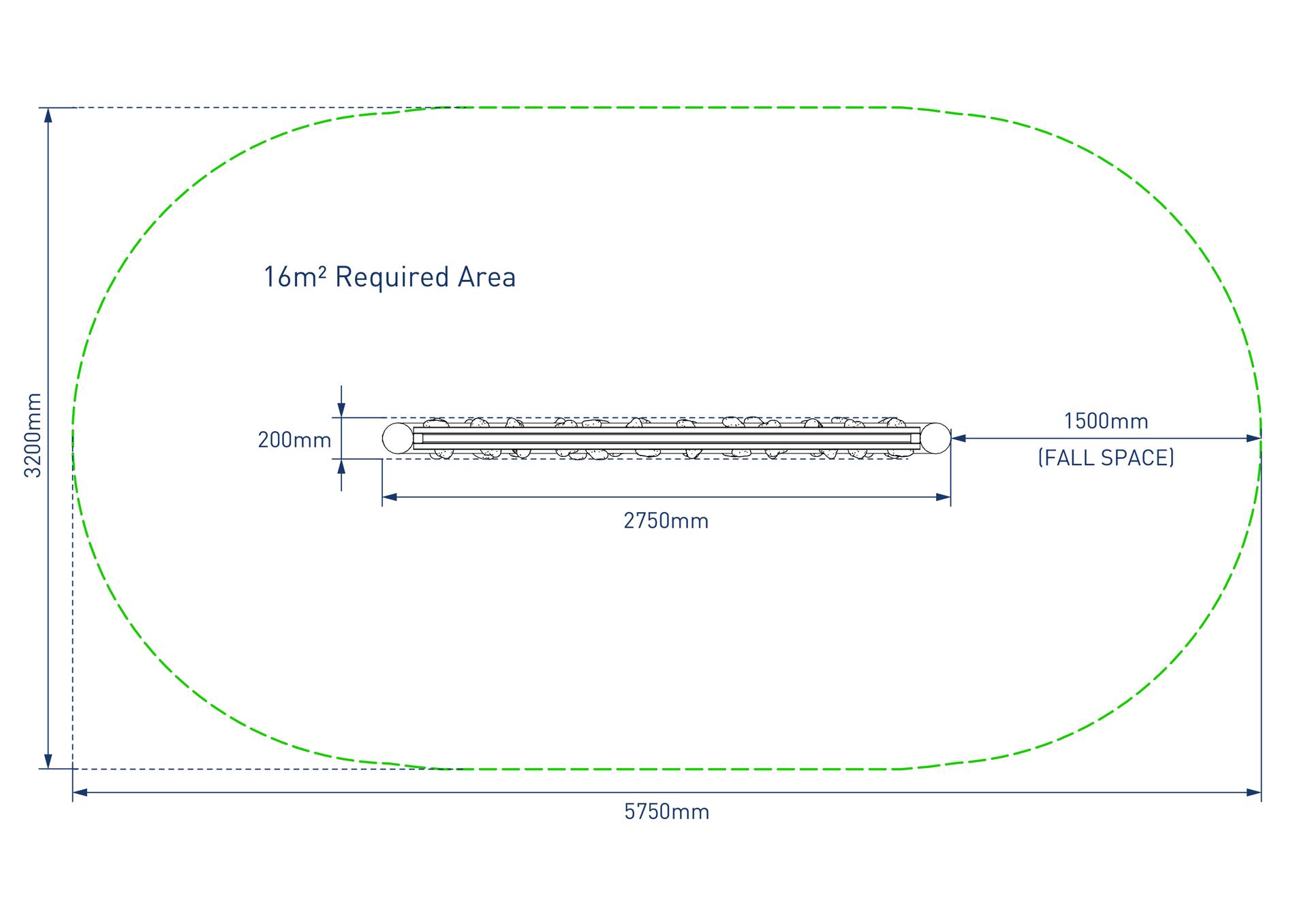 - Overall size including fall space: 5750mm x 3200mm