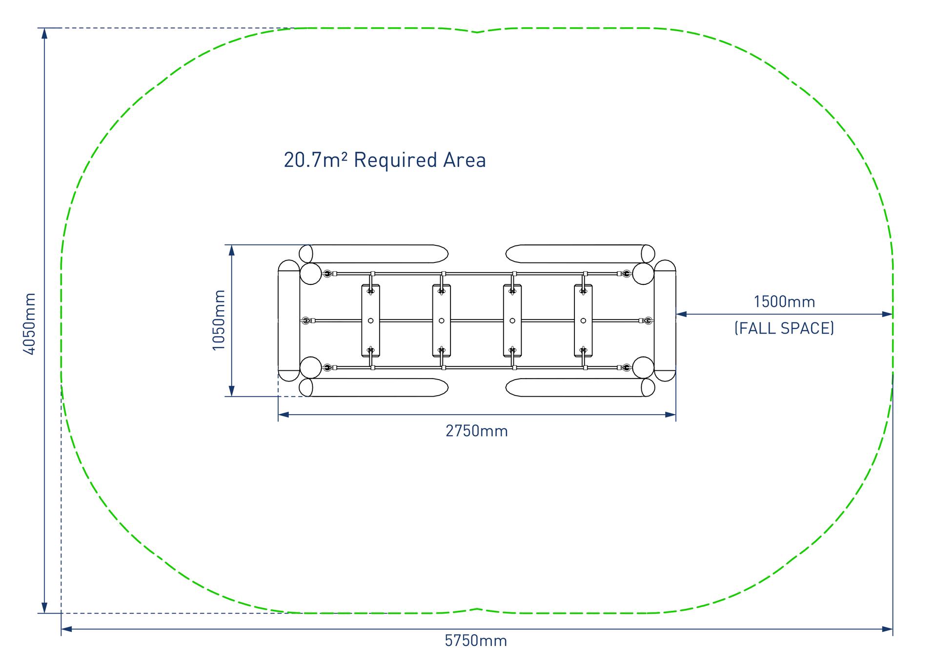 - Overall size including fall space: 5750mm x 4050mm