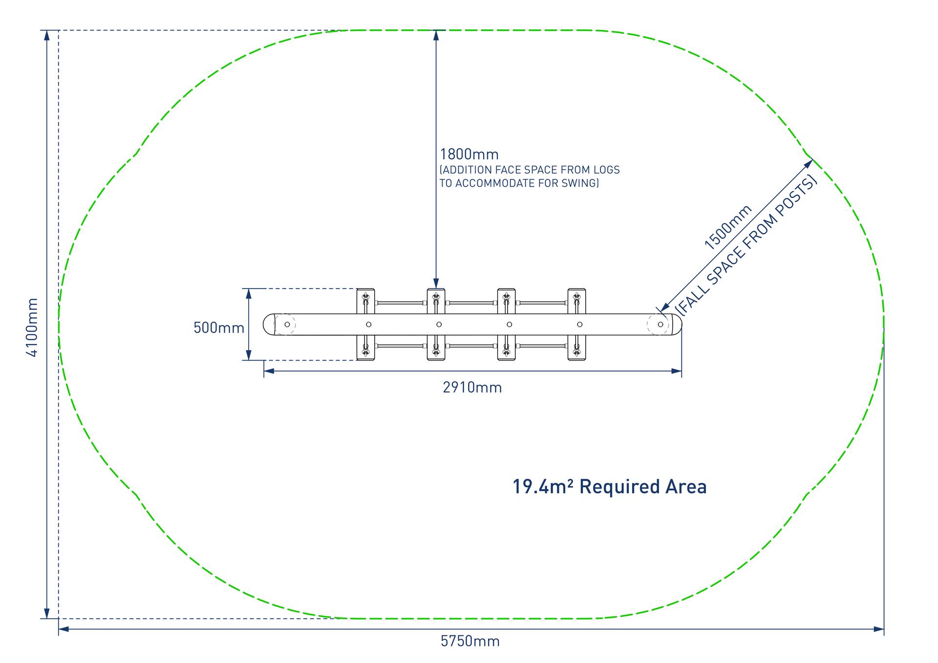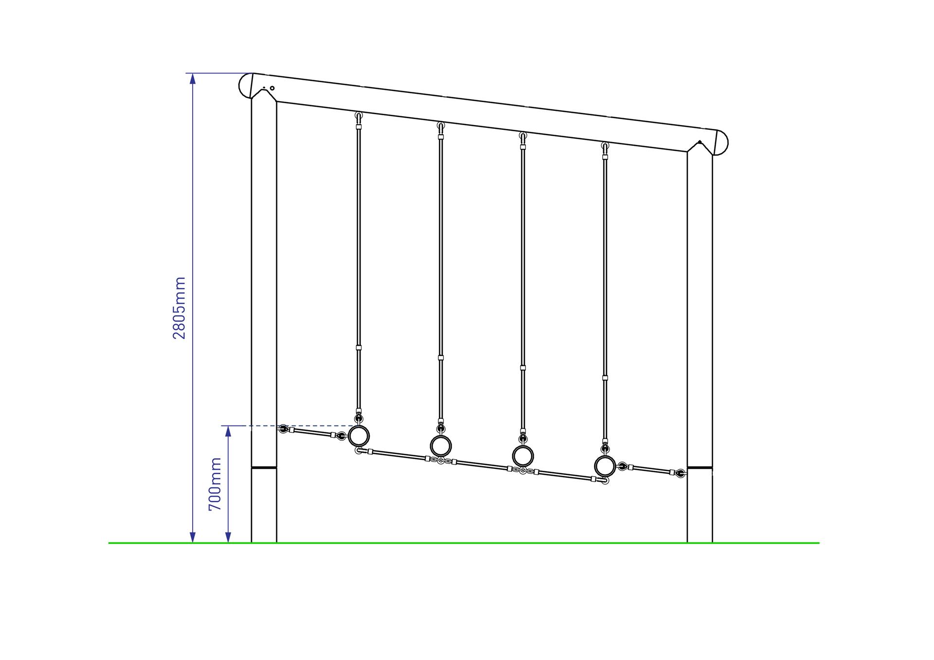 On a slight incline, the Inclined Swinging Log Crossing provides even more challenge as children tackle the moving logs, working their way to the other side on either an incline or a decline.