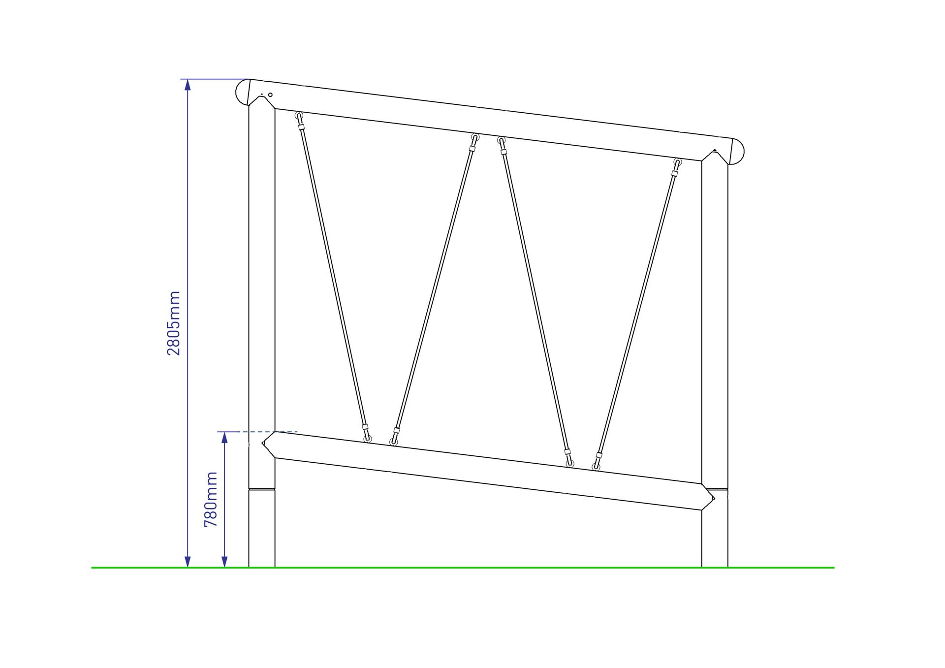 Reinforced full-height ropes are secured firmly between the lower and upper pressure-treated timber beams, providing a strong hold for the children to grab onto as they make their way across.