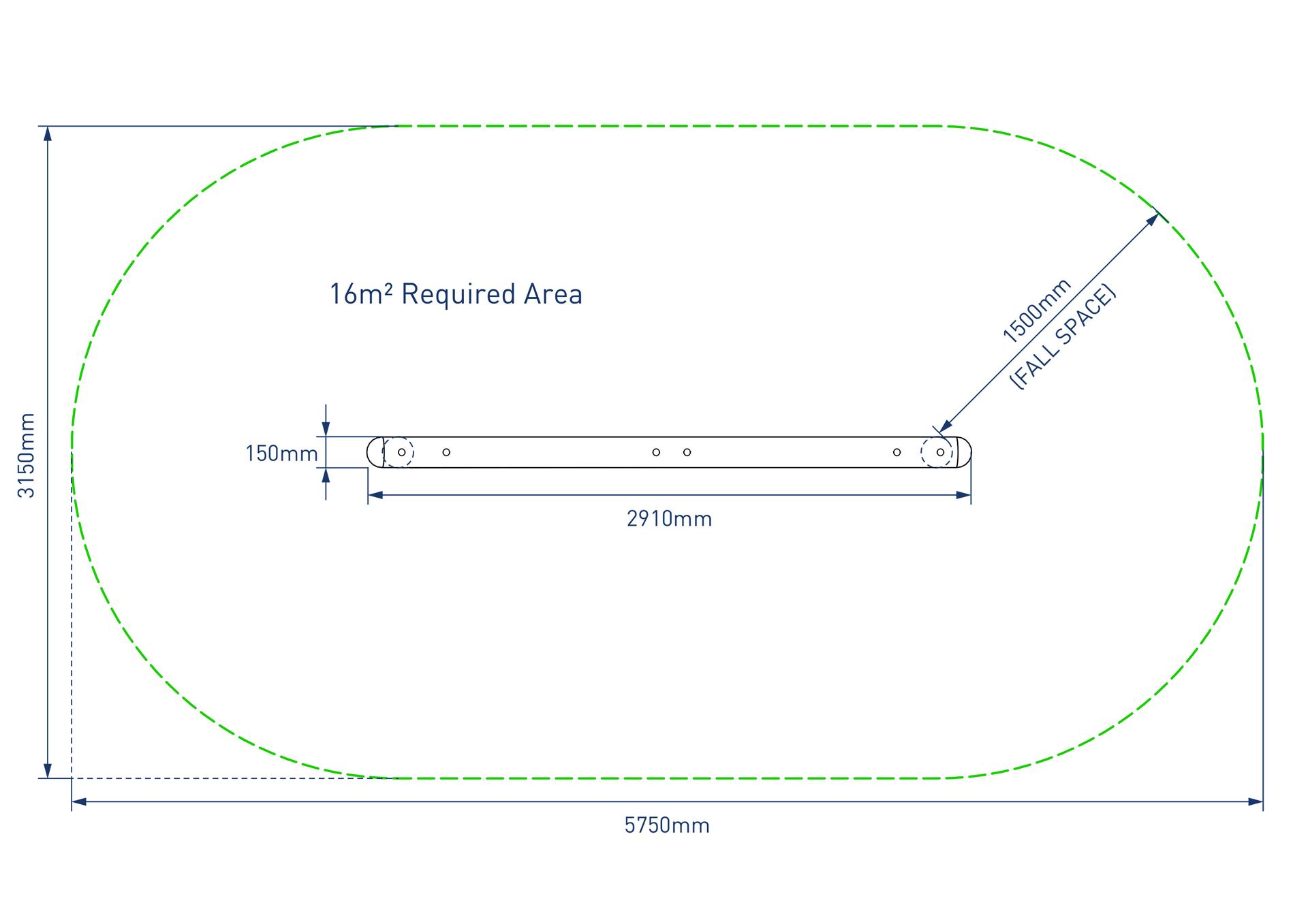 - Overall size including fall space: 5750mm x 3150mm