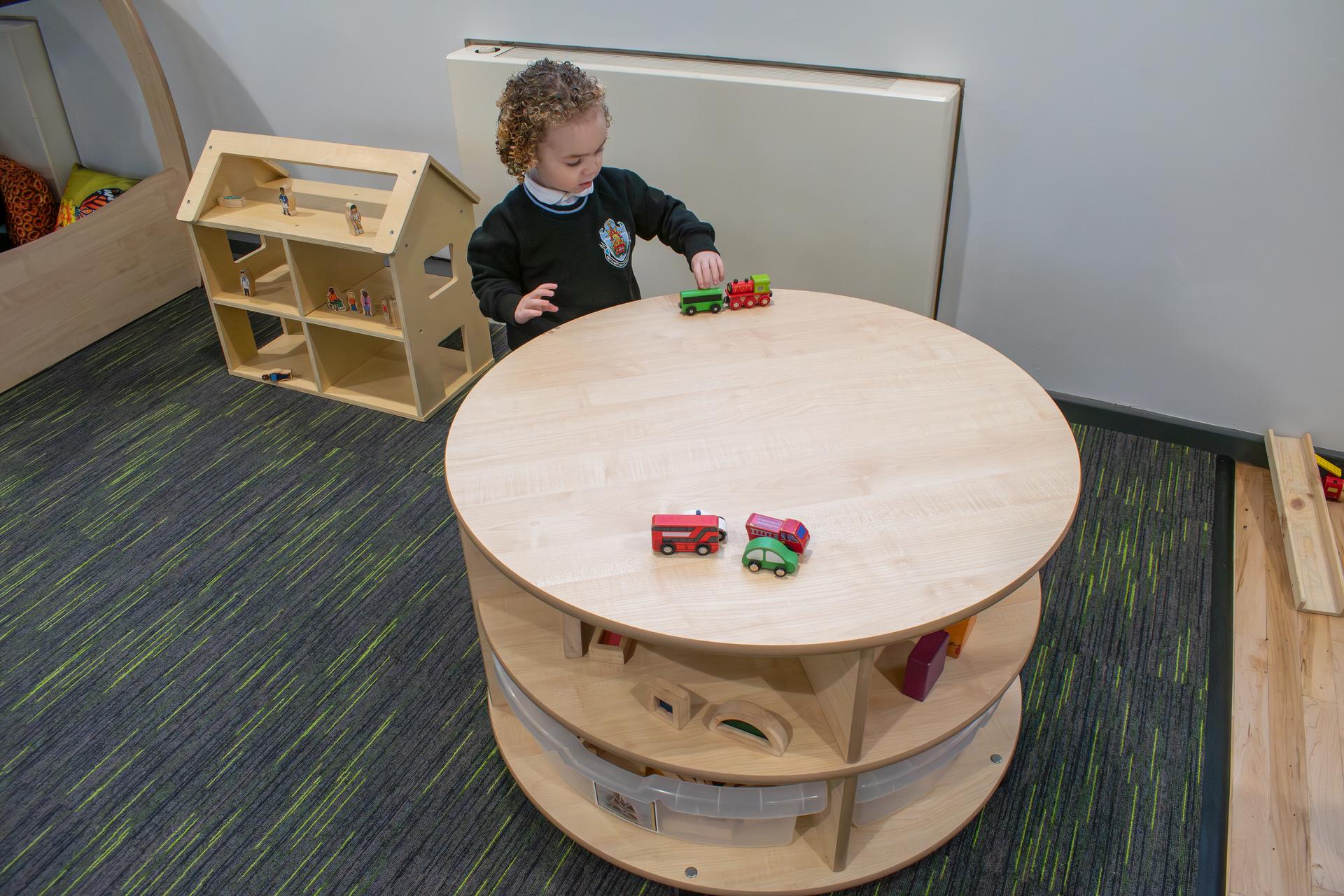 Standing at a height of 540mm, the Double Tier Mobile Circular Storage Unit provides a brilliant surface for children to play with their toys on. As children utilise the surface, you can be rest assured that the beautiful wooden material can withstand it.