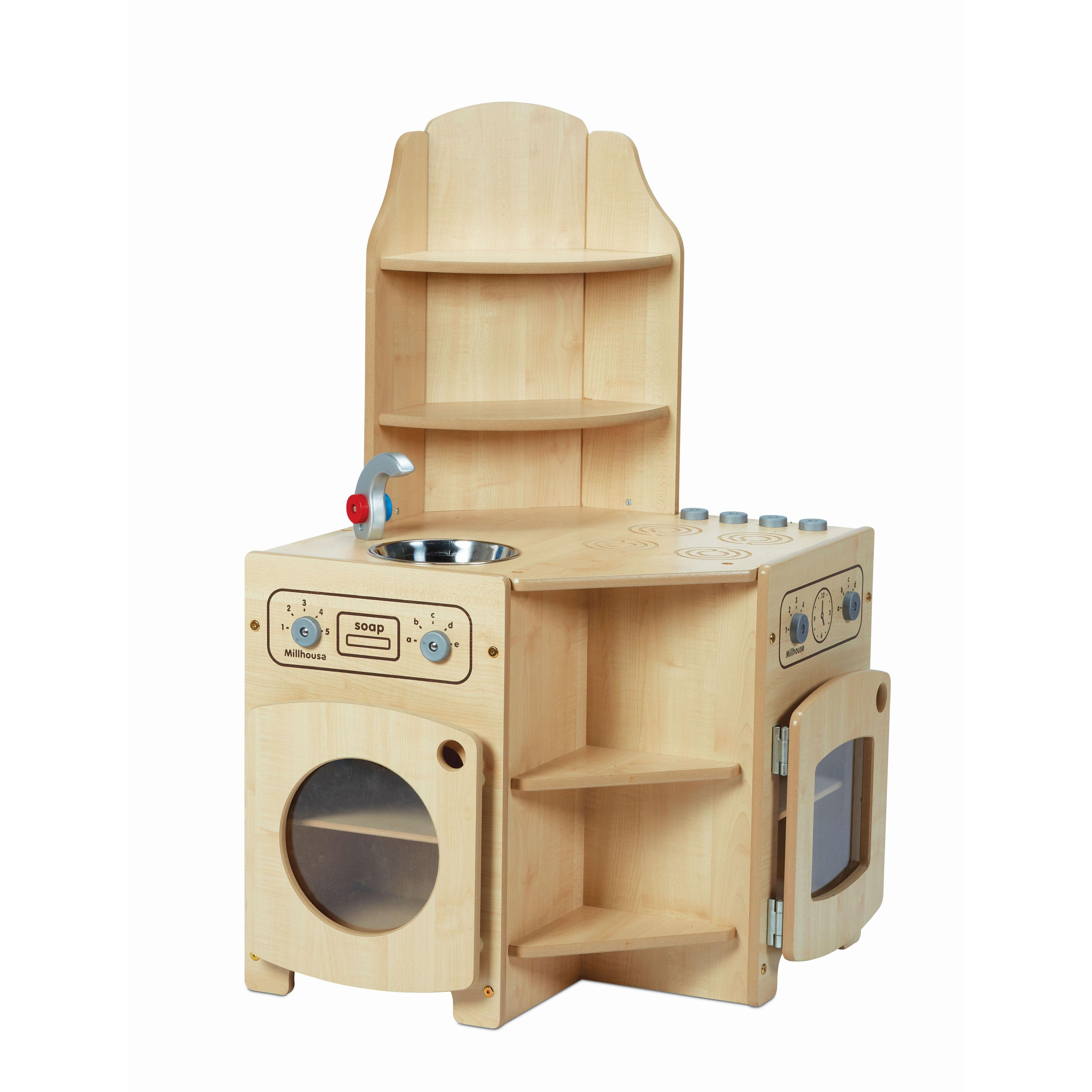 Bring playtime to life with the Millhouse Grantham Kitchen Set, a charming and versatile collection that invites little ones to explore everyday routines through imaginative play. Designed with familiar kitchen elements like an oven, fridge, sink and washer all working together, this set inspires children to cook up stories, share roles with friends and enjoy creative interaction in home corners and play areas. Realistic touches like rotating dials, a working tap and open shelves make play feel familiar and exciting, encouraging children to take the lead in their own play narratives.