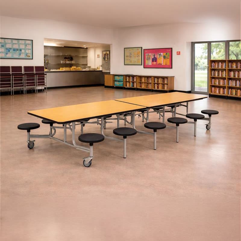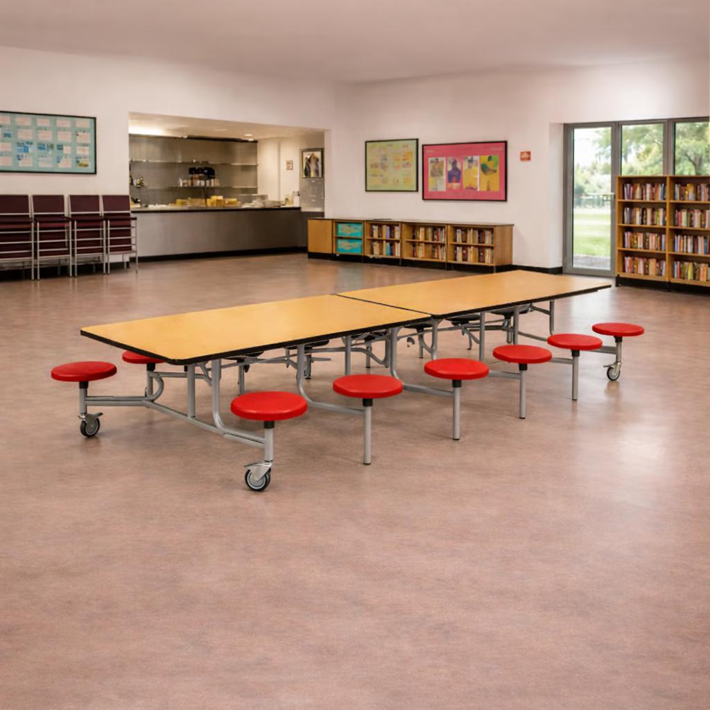 The Spaceright Twelve Seat Rectangular Mobile Folding Dining Table is one of the most popular school dining tables within our range. Constructed by a team of school dining furniture experts in the UK, this table is built to provide the perfect lunchtime experience for children between EYFS-KS2.