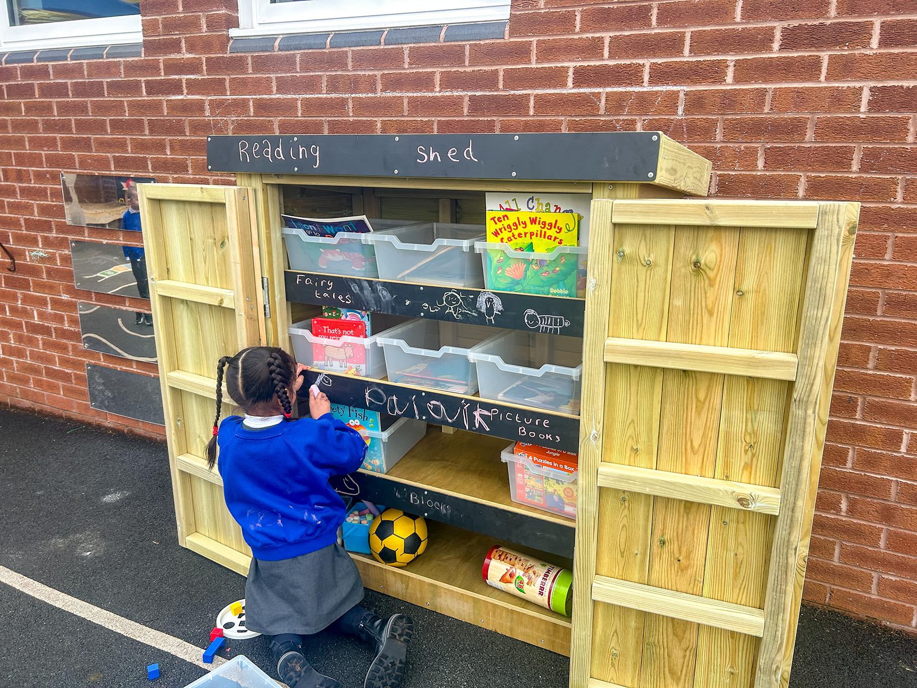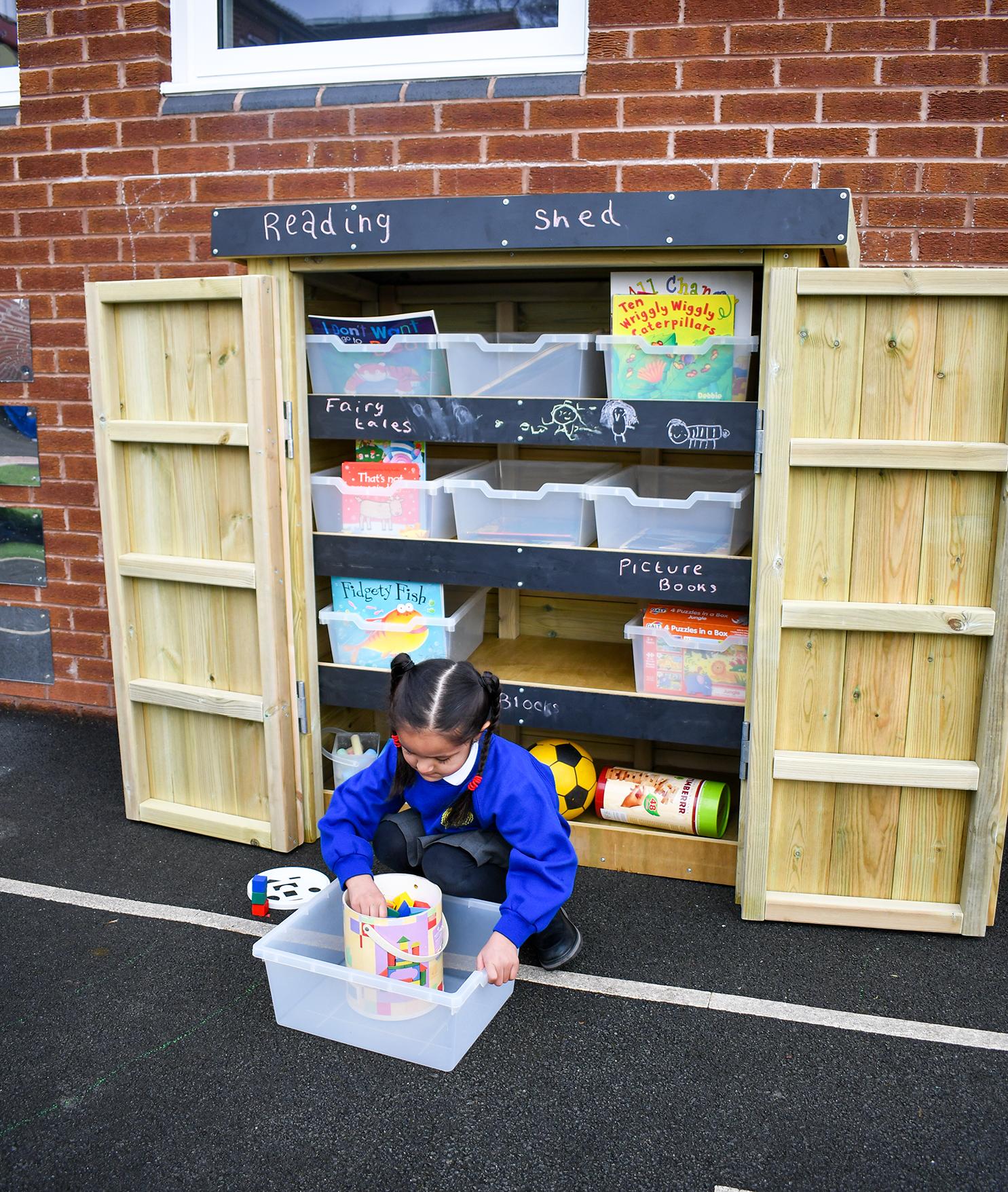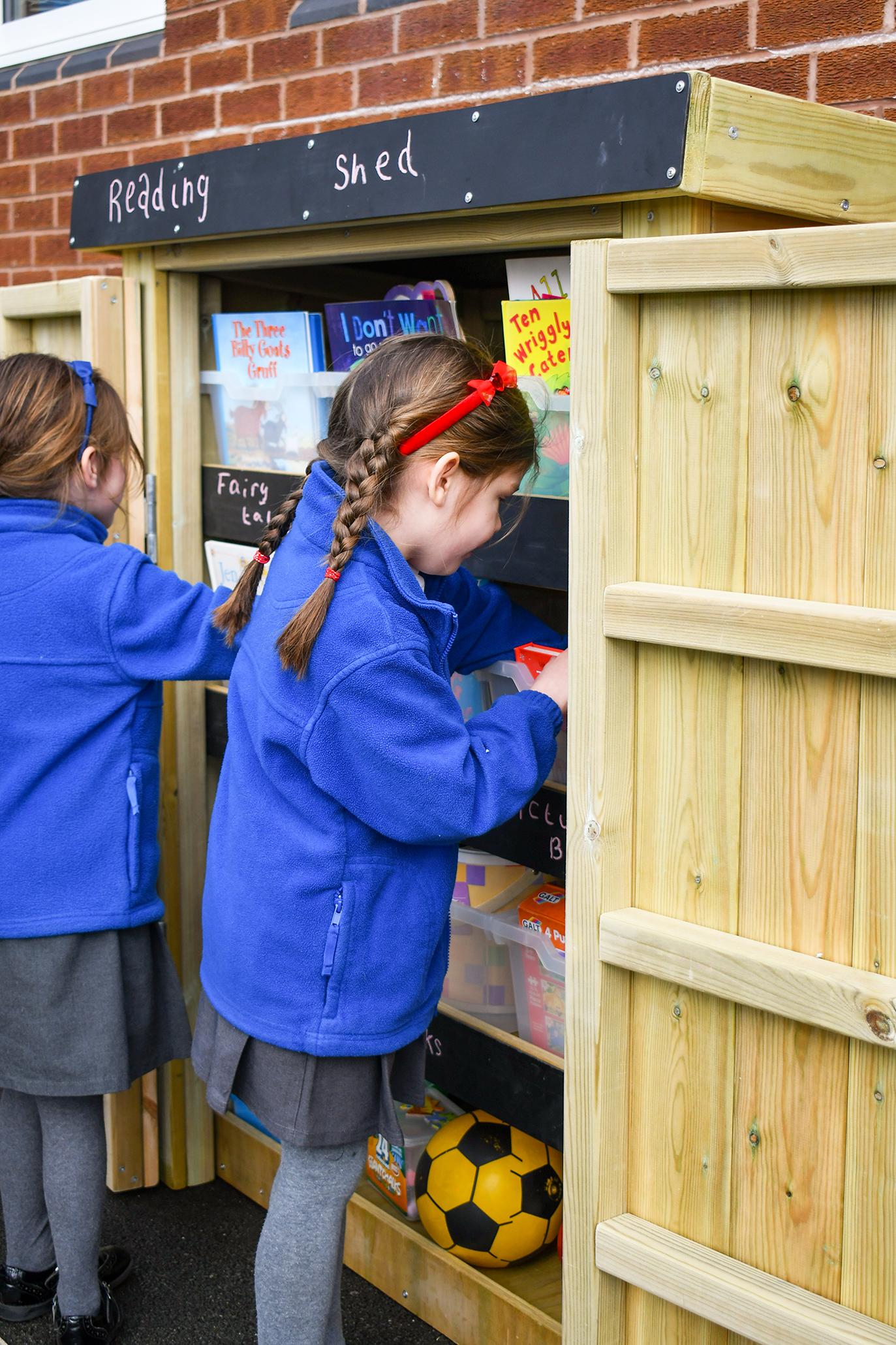When you're looking to make your resources available to your children, there are stainless steel hooks on the side of the store meaning you can hook them open to ensure they do not slip shut in the wind.