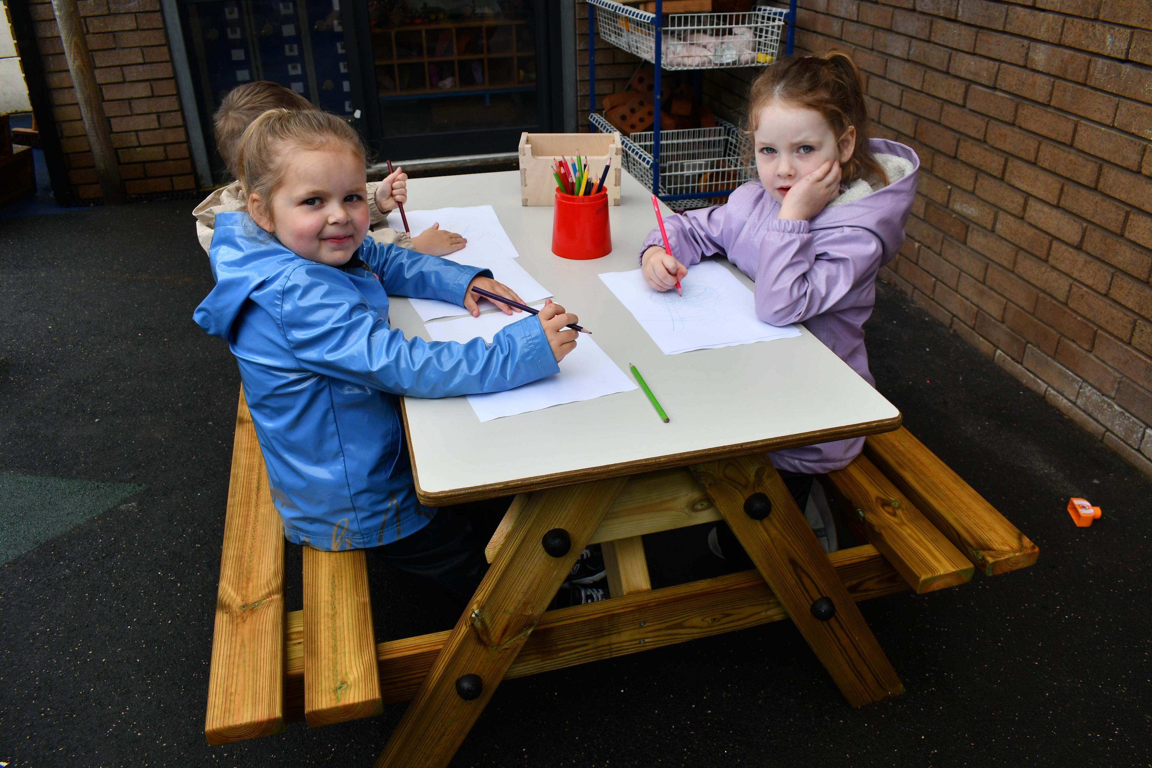 Time to sit down and get creative. This pleasant Easel Table provides not only an area for children to sit, draw and write in a relaxed manner, but also provides a unique social setting for children to sit together and interact over their artistic creations and feelings. Having benches either side encourages children to discuss what they are drawing with each other and enables them to share ideas if others are struggling with things to draw or write. It easily lends itself to PSED development through sharing and cooperating. Allowing children to explore with colour and design boosts their creative independence and is perfect for development of fine motor skills when drawing and passing chalks and pens to each other.