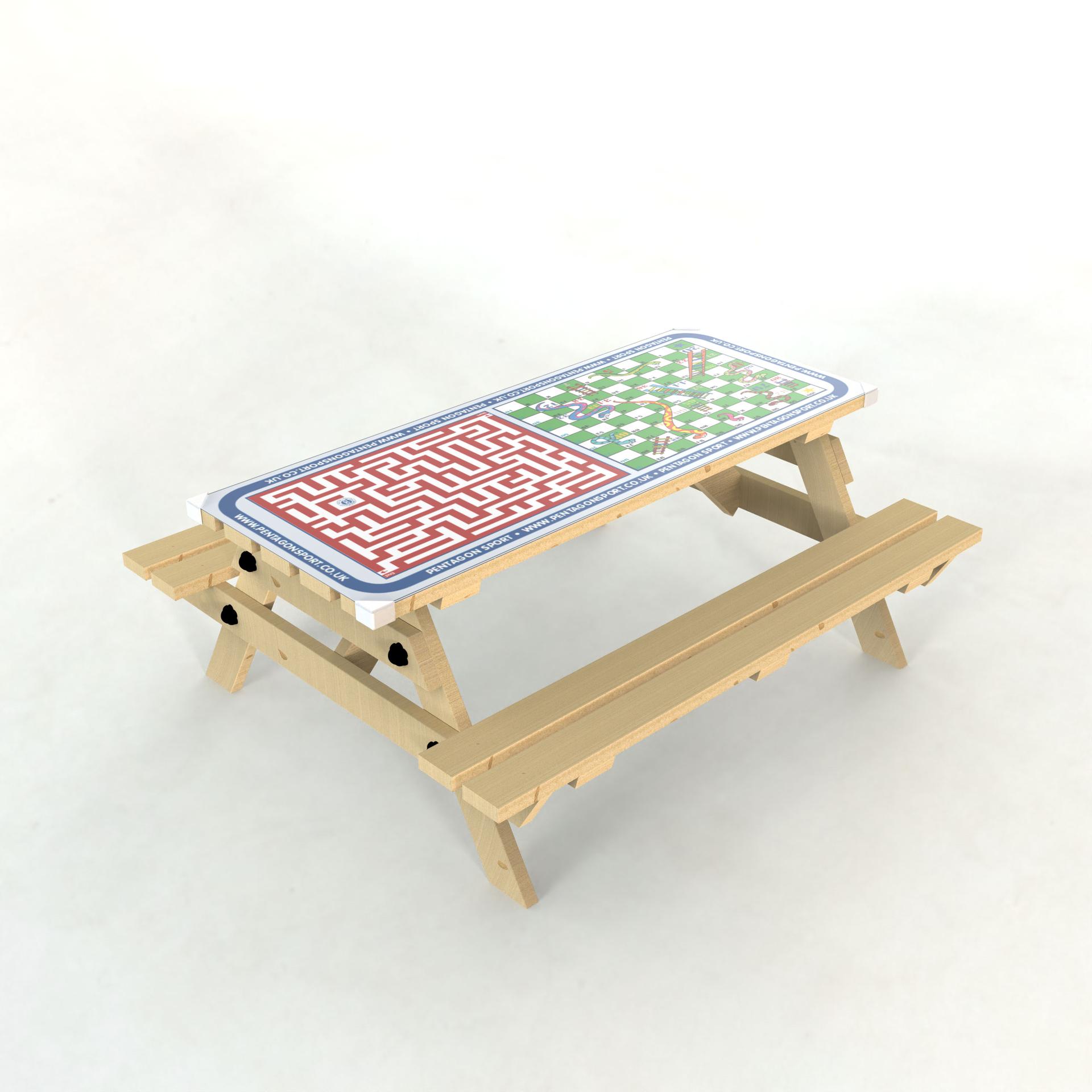 Our Picnic Table with Maze and Snakes Gametop will develop children's PSED, understanding of the world through turn taking and strategic thinking. A great Picnic Table that will create exciting child-led lunchtime competitions.