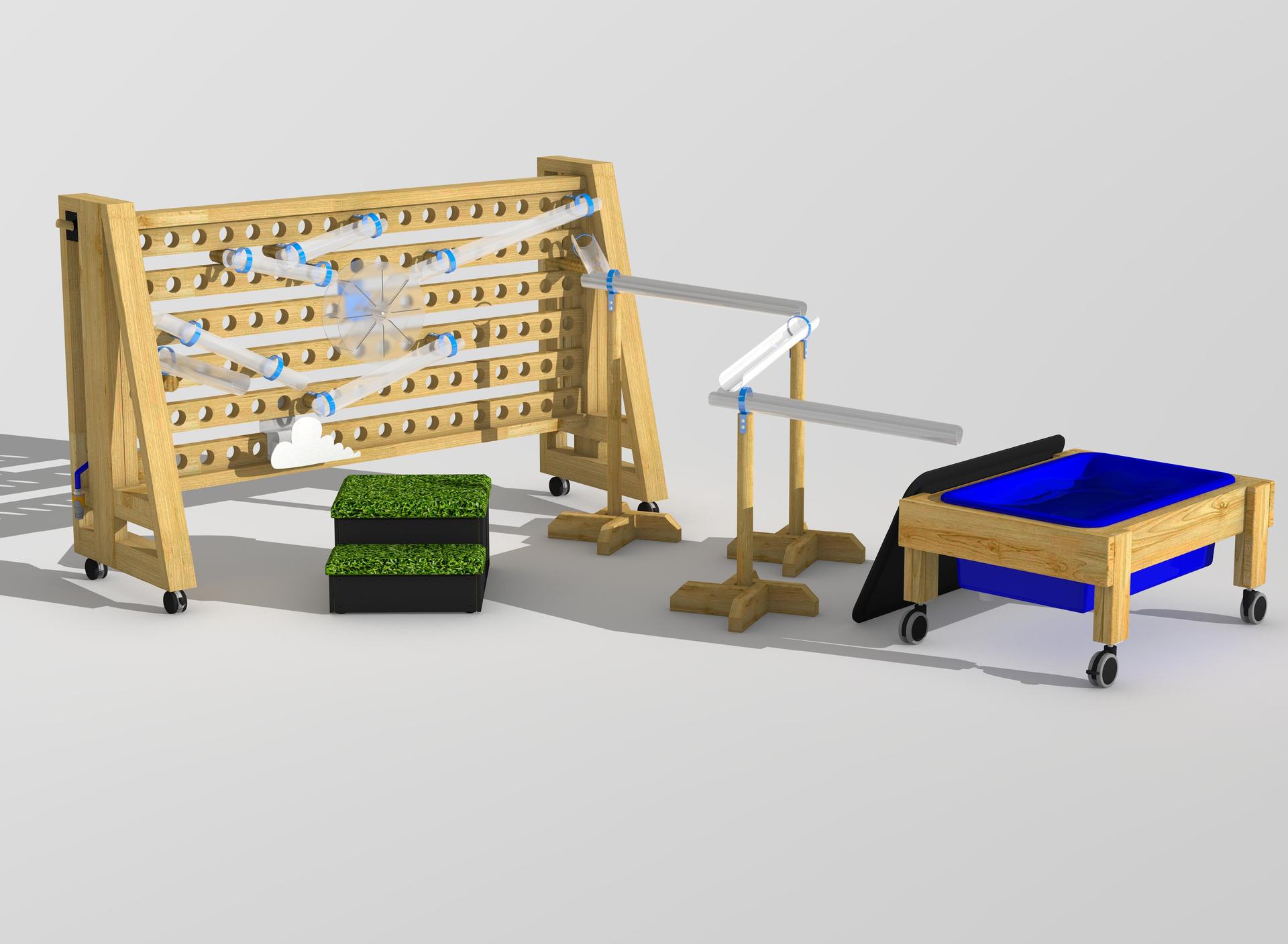 Complete Water Play Experience – Combines the Movable Water Wall, Water Channel Stands and a Water Table on wheels for endless flowing fun.