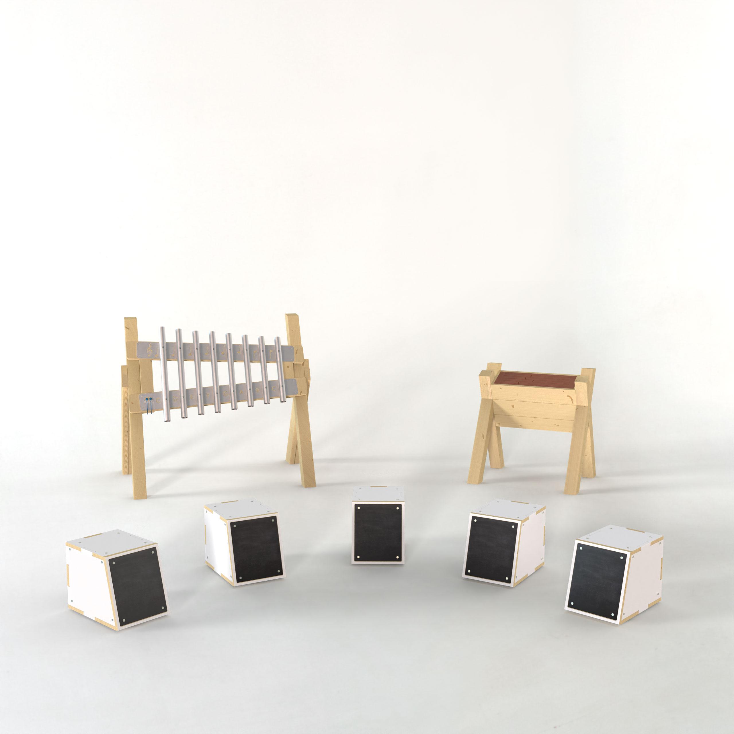 Our marimba is made from high pressure treated ‘play grade’ timber and a hardwood called Sapele, creating a robust and study product.