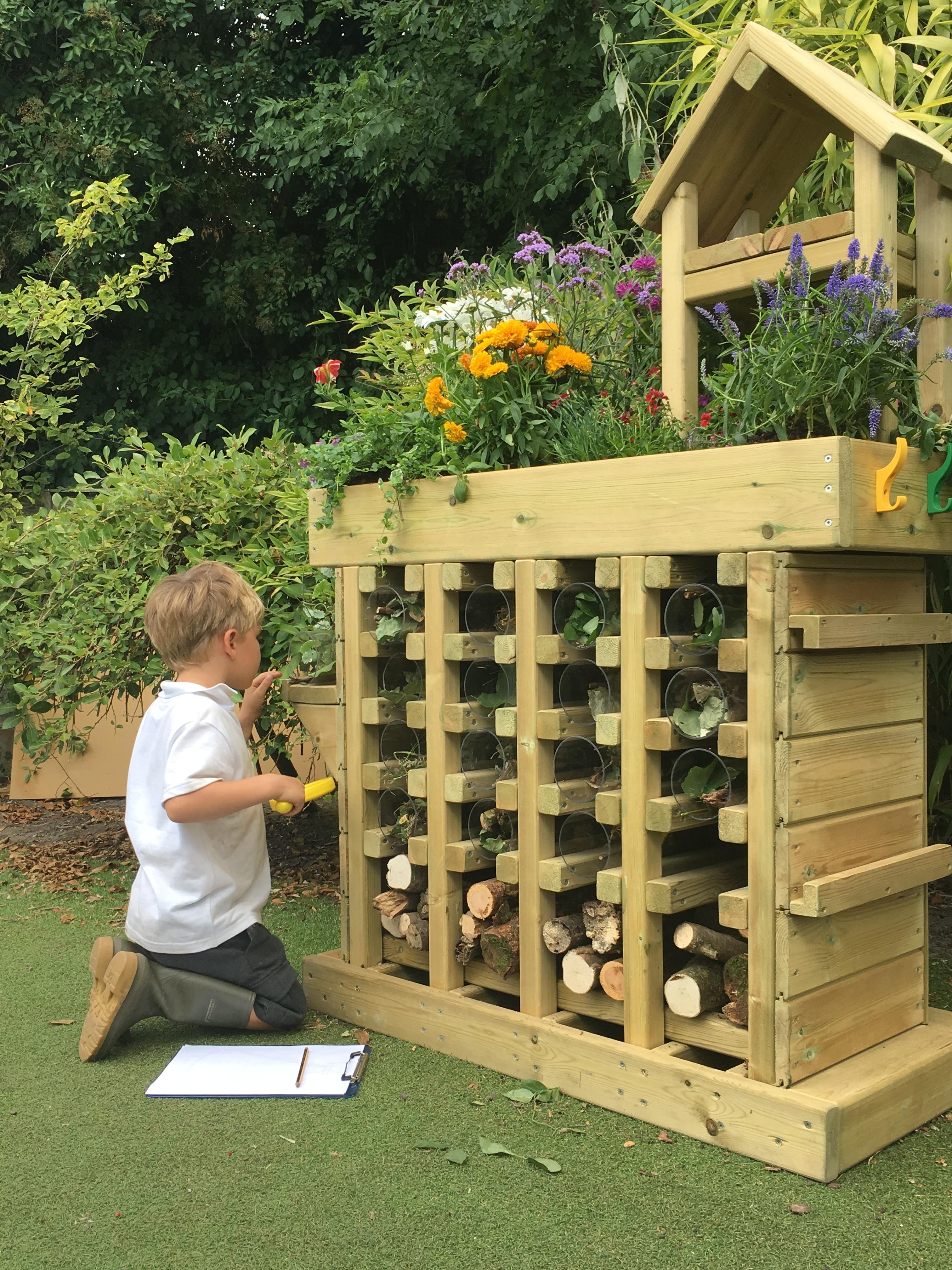 Providing the naturally occurring nooks and crannies for mini-beasts to shelter from predators and weather, our Bug Hotel offers five star accommodation and the perfect opportunity for education on habitats and identifying invertebrates, not to mention making bugs fun.