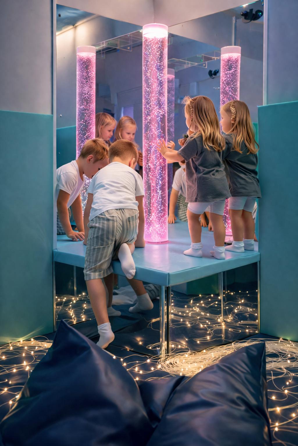 The Square Podium is available in a range of colours and fits neatly around the Bubble Tube to create a striking central feature that is both safe and inviting. Together, these products transform any space into a hub of interaction, relaxation and visual delight.