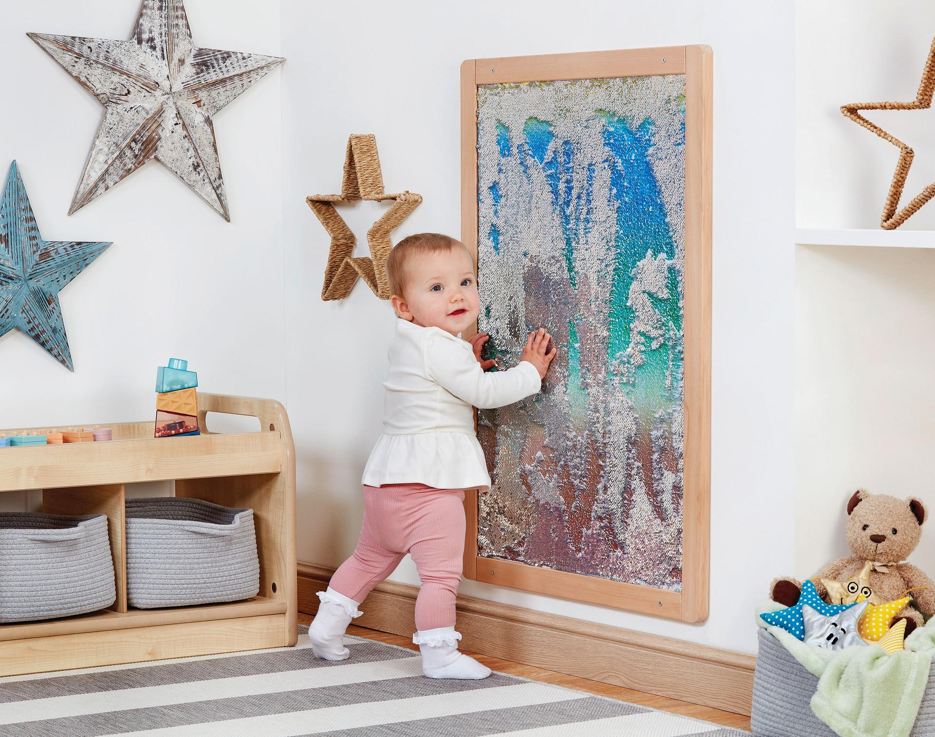 The bundle includes the Sensory Wall Sequins Panel, where children can swipe, brush and create patterns to engage their sense of touch and spark imaginative ideas. The Sensory Wall Domed Mirror offers a playful, distorted reflection that fascinates and delights while encouraging self-recognition and social interaction. Completing the trio is the Sensory Wall Mirror, perfect for exploring movement, expressions and body awareness in a safe and engaging way. Together, these three panels provide a rich and varied sensory experience that supports emotional regulation, focus and independent play.