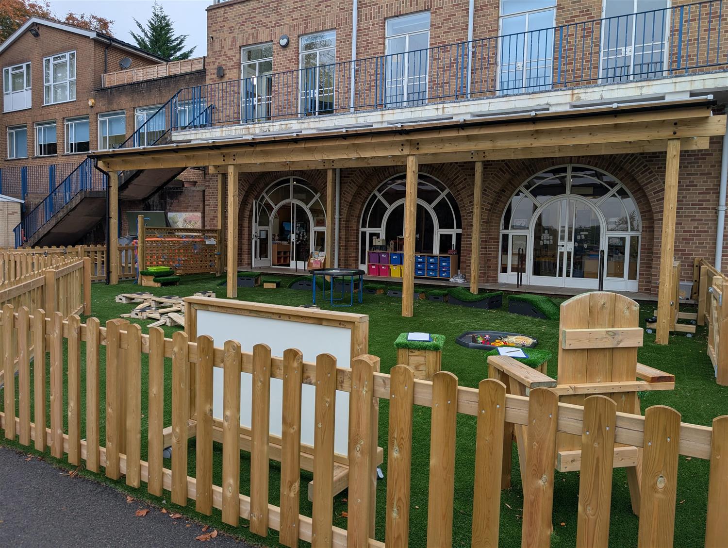 Connected to the EYFS classroom, a Freestanding Timber Canopy (12m x 4m) could be seen. Designed and built to meet building regulations, the structure provided a safe space for children to play outdoors regardless of the weather conditions. The teachers loved this addition, as they felt like weather conditions such as rain and snow would no long restrict playtimes.
