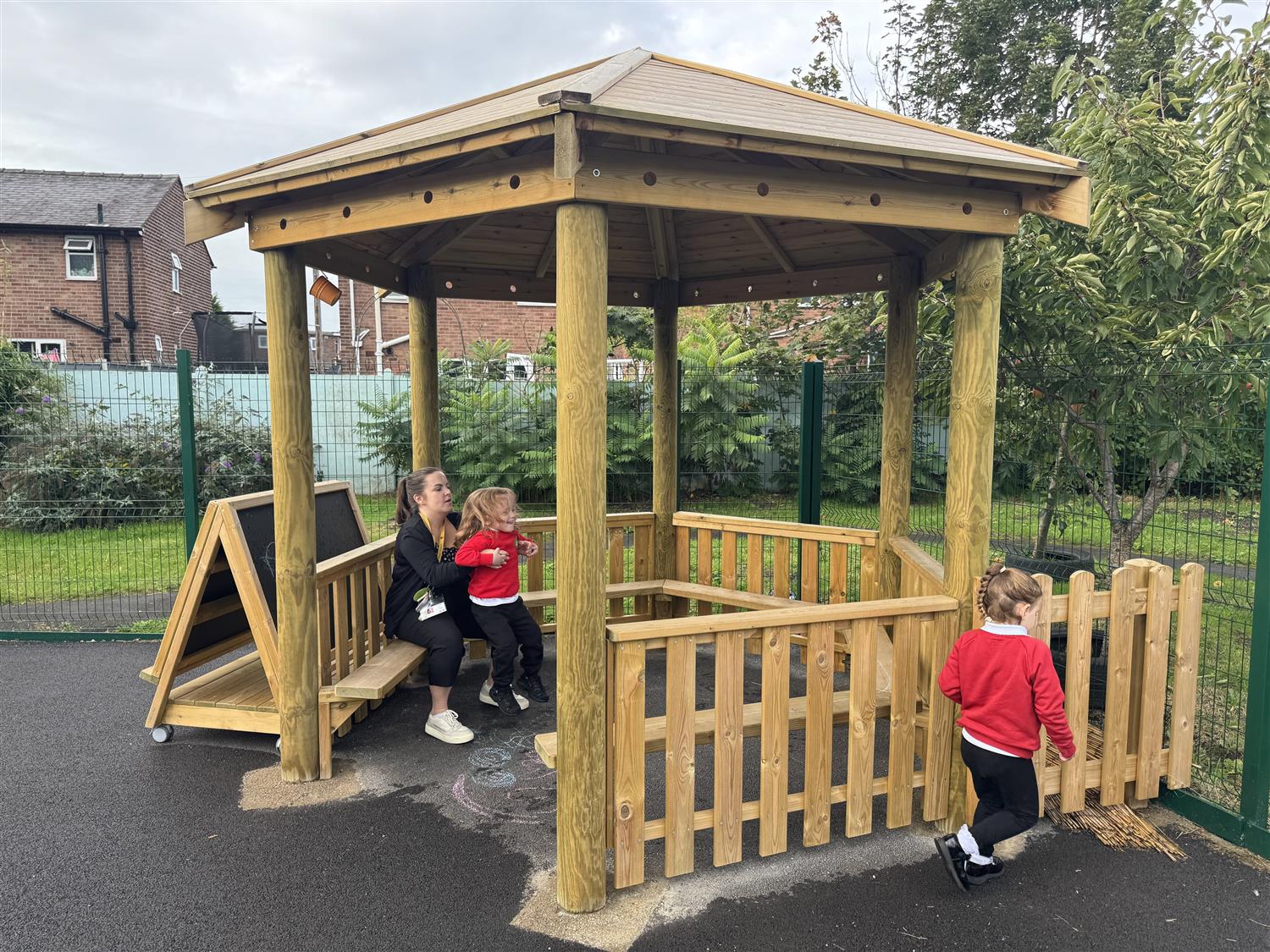 We also noticed the Circular Maze thermoplastic marking and Sensory Arbour within the area too, allowing children to engage in light physical activities, whilst still focusing on developing their senses. Around the perimeter of the play area, our Bow Top fencing and gate could be seen, helping to effectively zone the area and help to maintain a sense of peace within the quiet area.