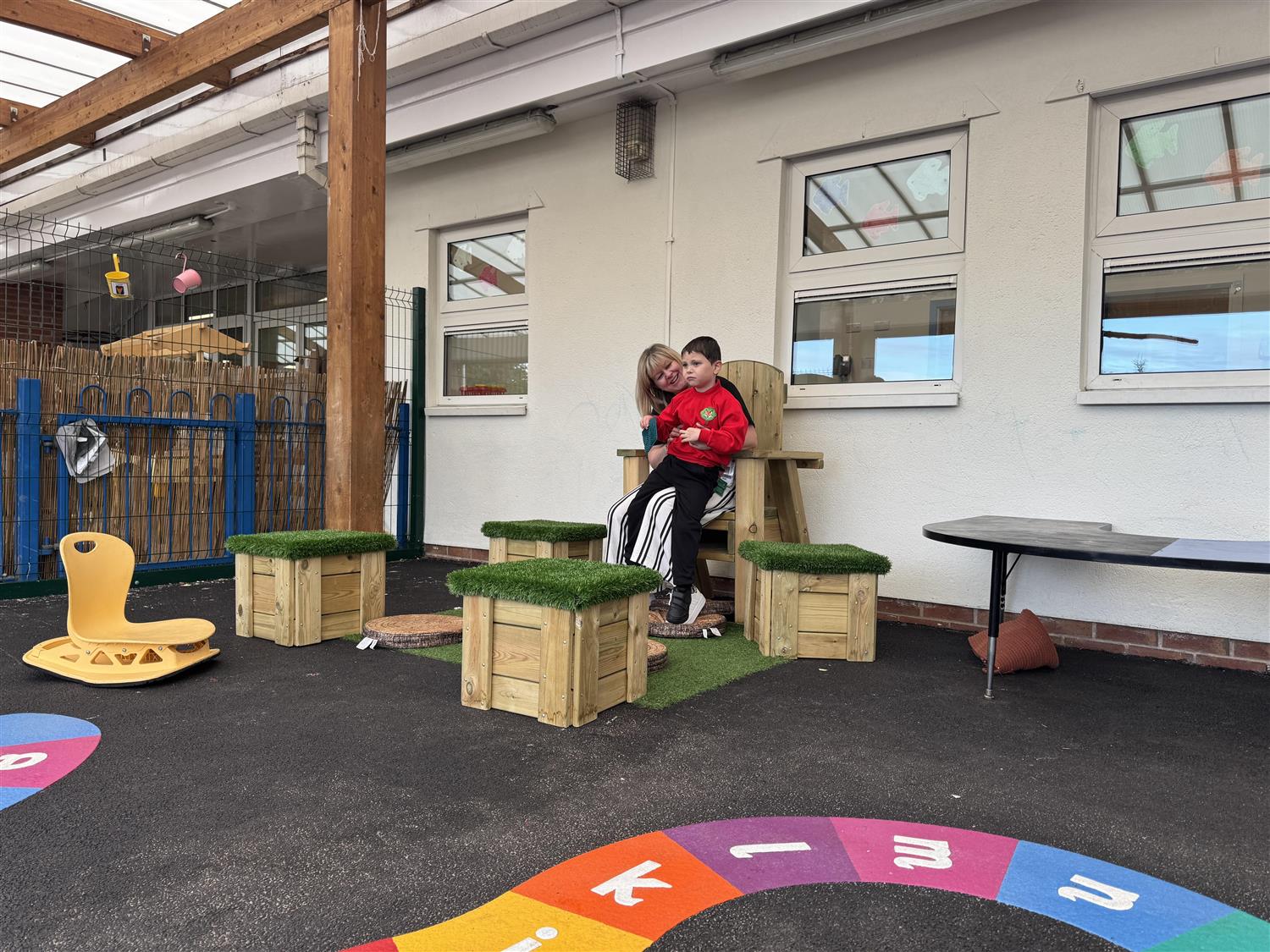 Entering the first playground, the staff explained how this area was designated for children who wanted to relax during their playtime and engage in activities that weren't as physically intensive. In addition, the staff explained how important an area like this is for a special school, as it allows children to de-stimulate in a safe environment and assist with self-regulation.
