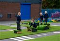 Once we reached the playground, it was clear to see what an impact the new play area had on the environment. The thermoplastic road design surrounded by green artificial grass established a sense of vibrance and imagination across the entire outdoor setting. In total, over 165m² of safety surfacing was installed, bringing a new sense of life to the area. The surfacing included: