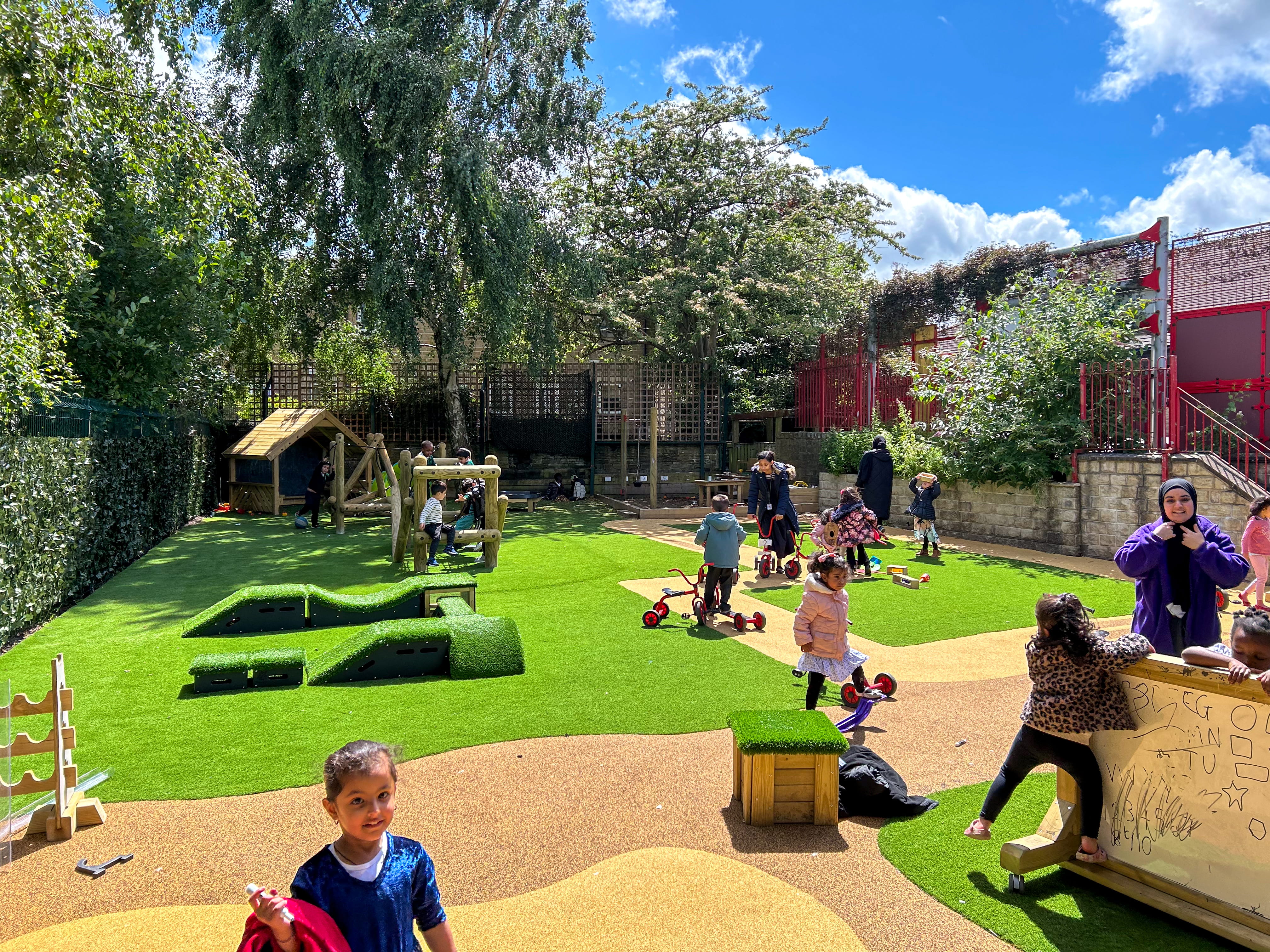 To bring everything together, the introduction of new surfacing has made a noticeable difference to how the space is used. With a combination of wetpour, artificial grass and playbond, the area now feels safer, more accessible and suitable for year round play. Staff commented on how the transformation has made the space feel “much more purposeful and engaging,” giving children a rich environment where they can learn through play every day.