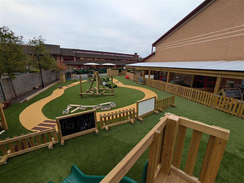 Woodloes Primary School in Warwick, part of the Community Academies Trust, set out to completely reimagine its EYFS outdoor provision. Led by Headteacher Sharon Byrne and supported by Allen Ravenscroft, Estates Manager for the Trust, the ambition was clear. The existing tarmac space no longer reflected the vibrant, exploratory environment the school wanted for its youngest learners.